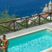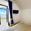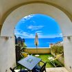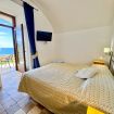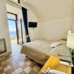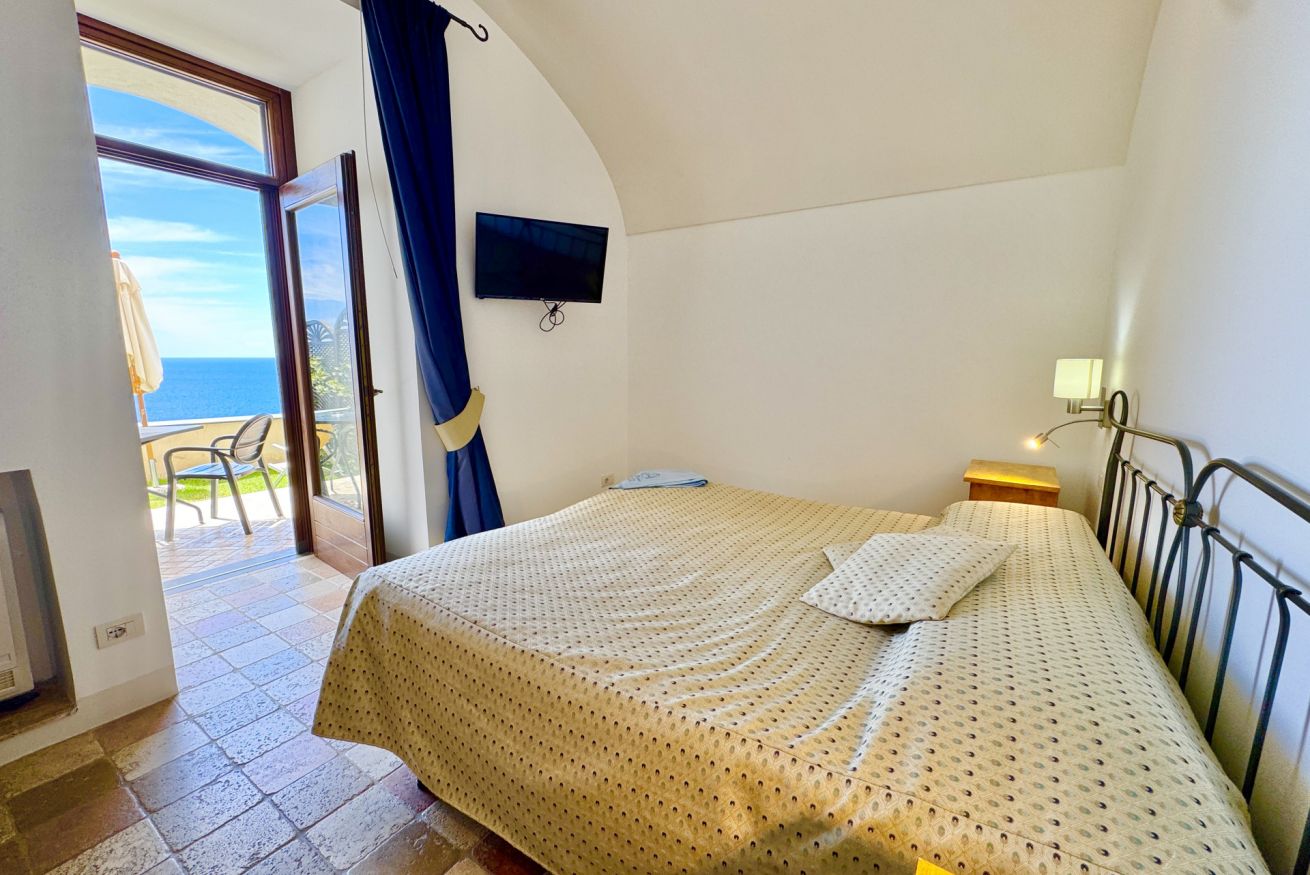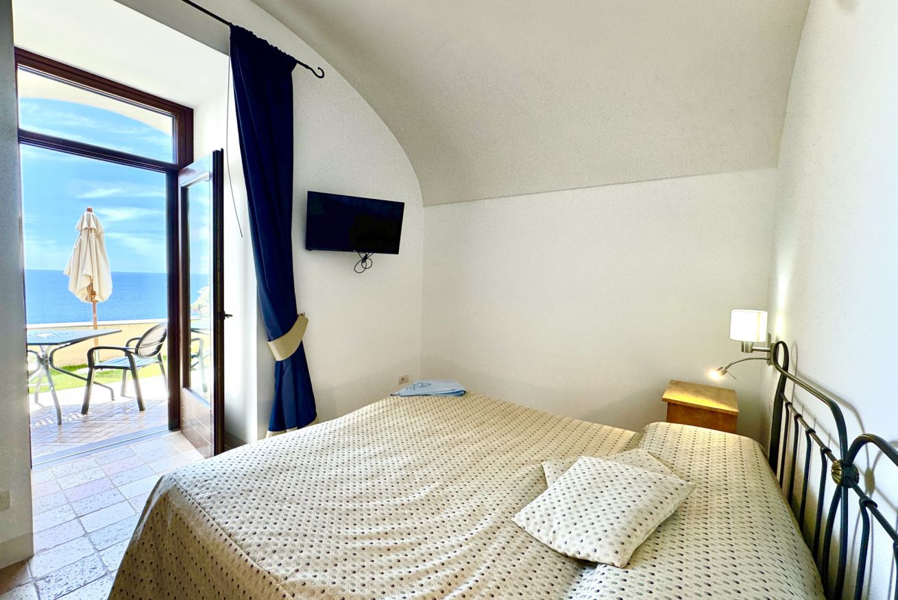 Superior Room with private Sea view terrace and small garden. The room features a double bed, en-suite bathroom with wc, bidet, basin, enclosed shower.