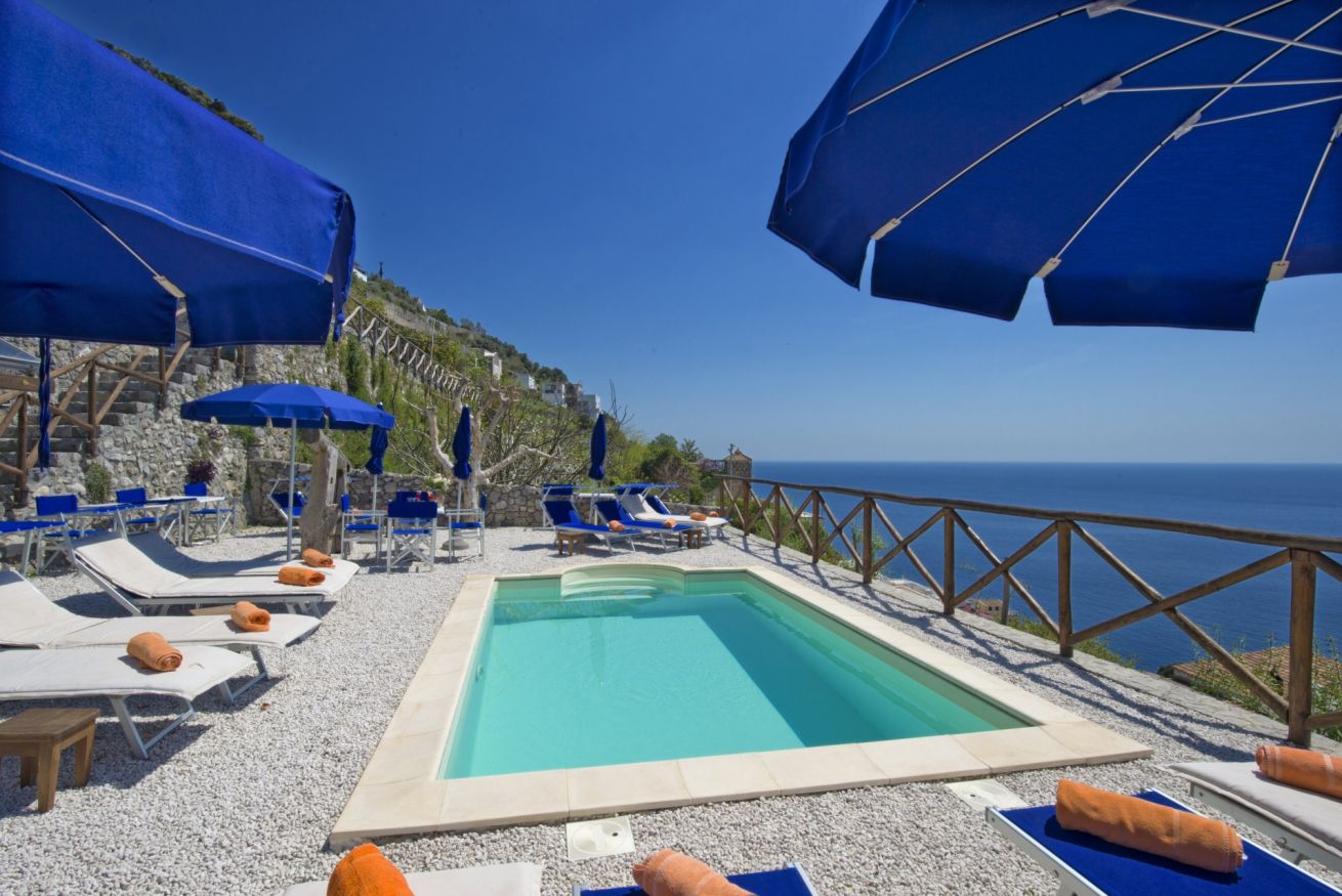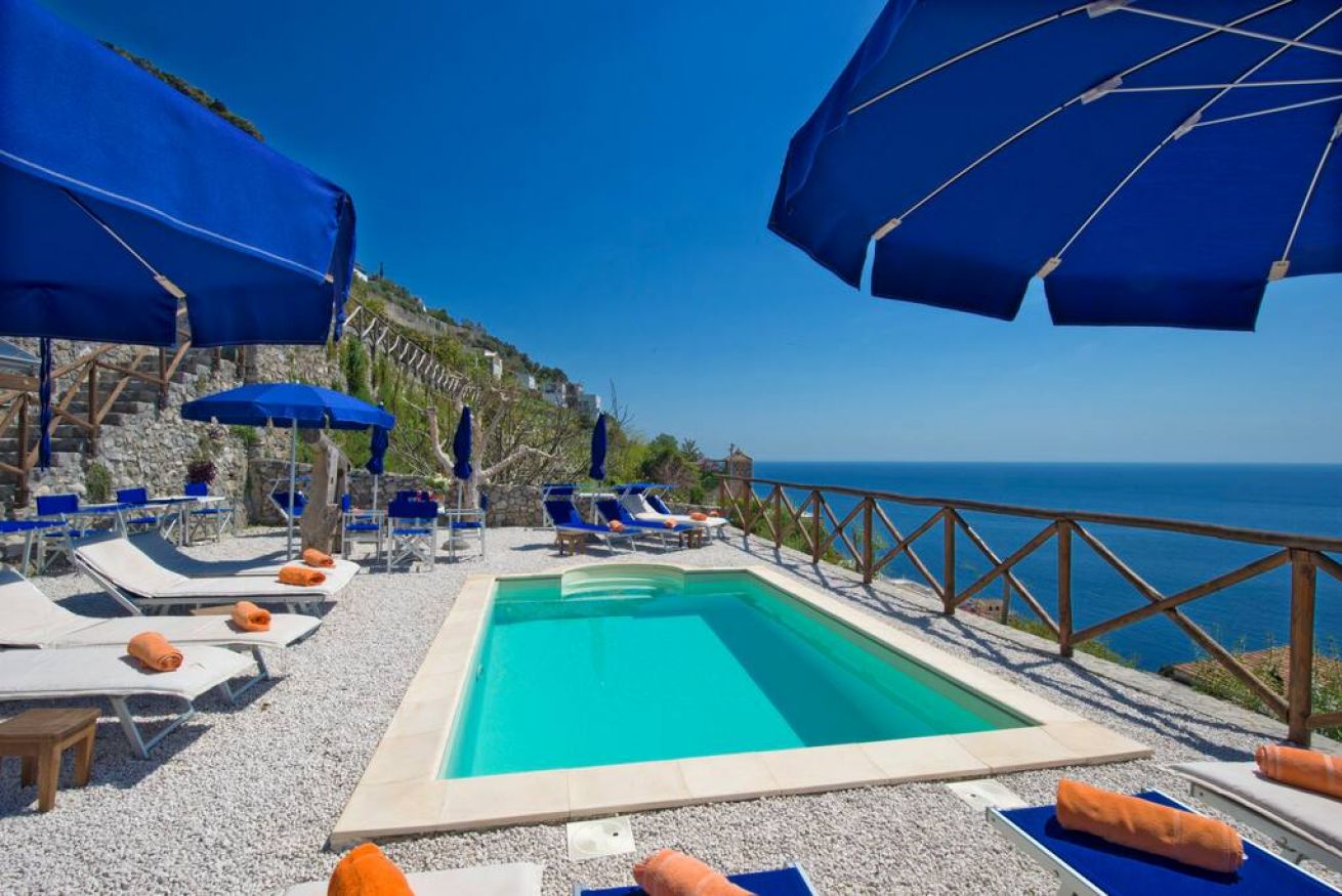 Our villa Il Frantoio / Lilmar has a total of 8 rooms and 8 bathrooms, private outdoor heathed pool and outdoor jacuzzi. All rooms have Sea view terrace and private bathroom. We do serve daily breakfast and daily room resets,